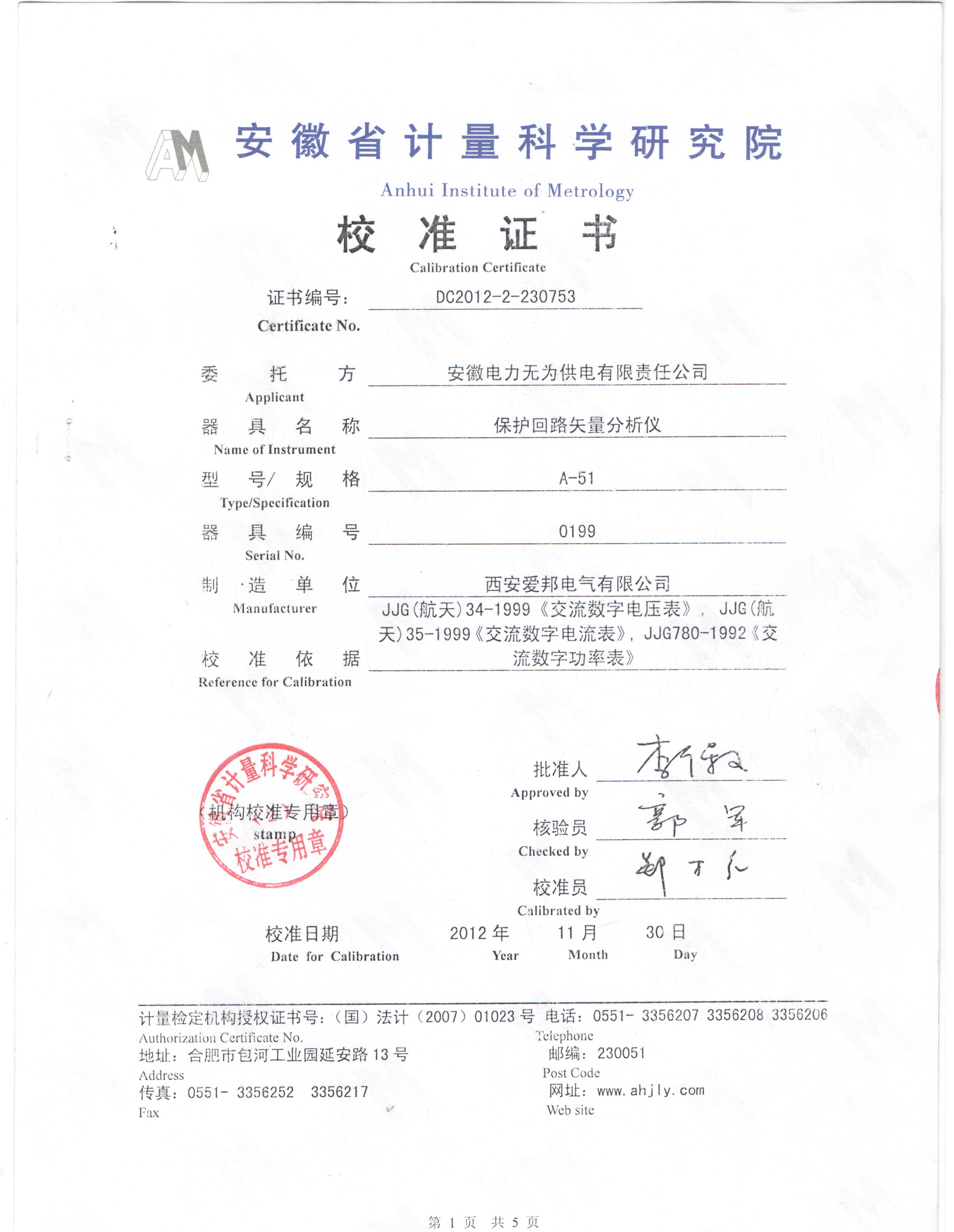 安徽計量院Apwr51檢定證書
