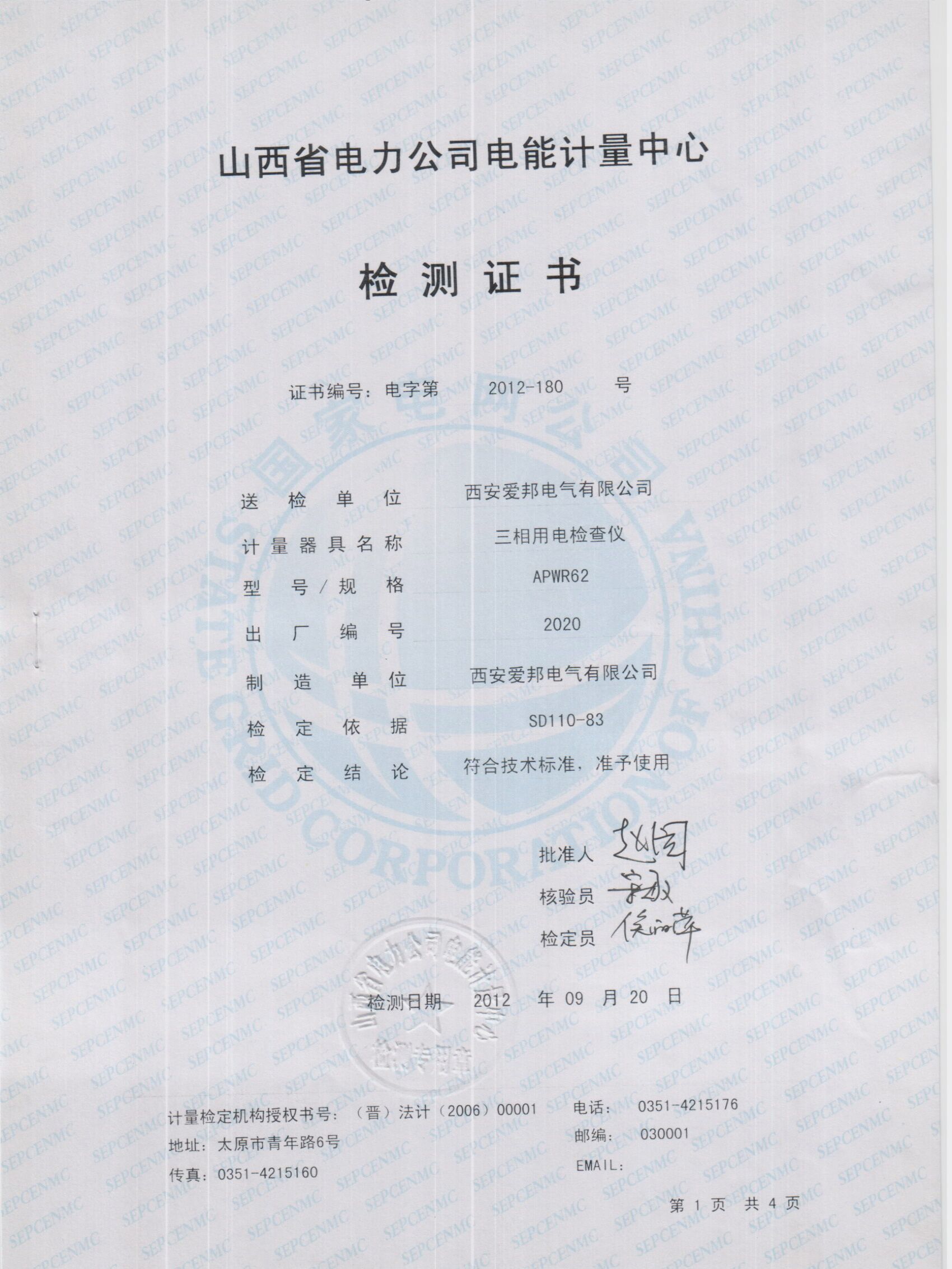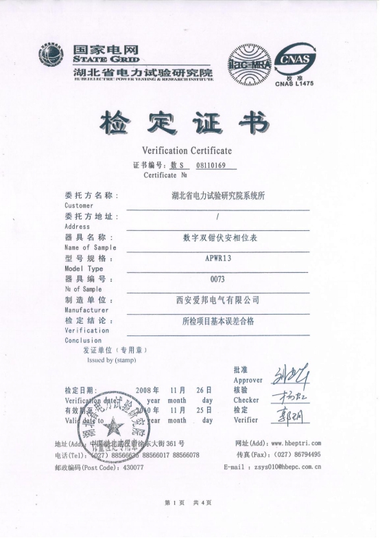 湖北電科院Apwr13檢定證書