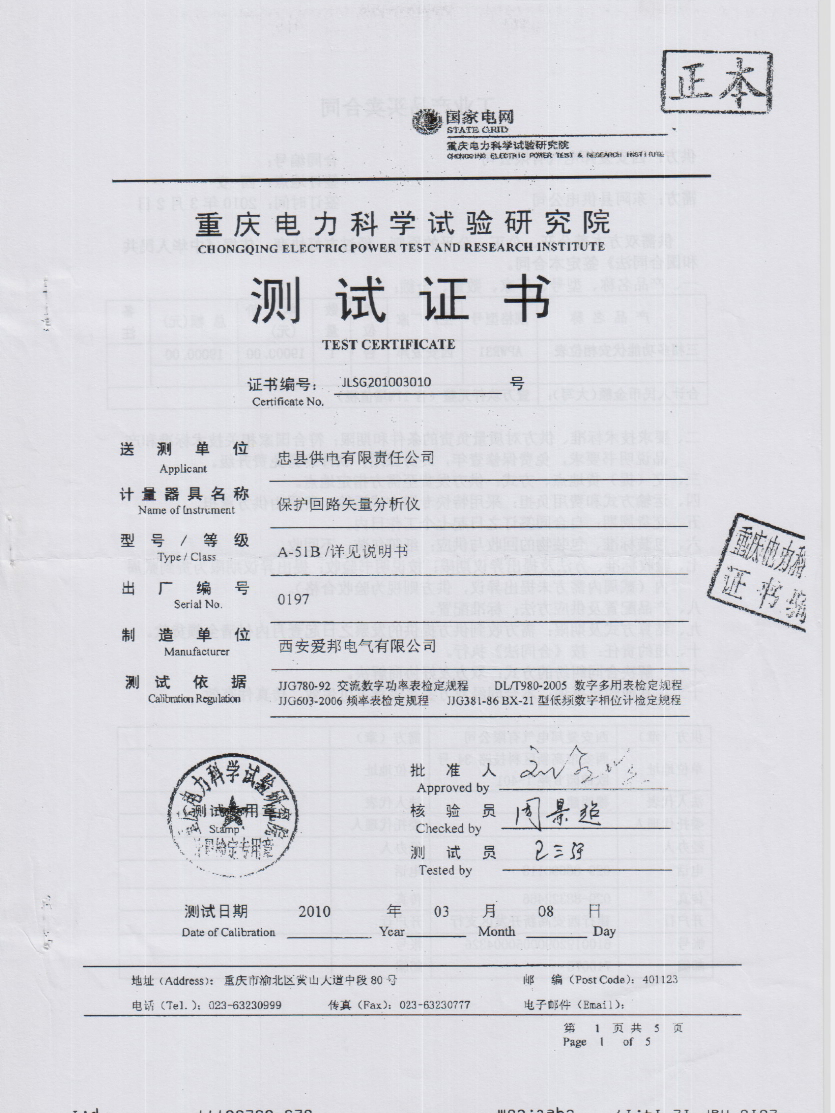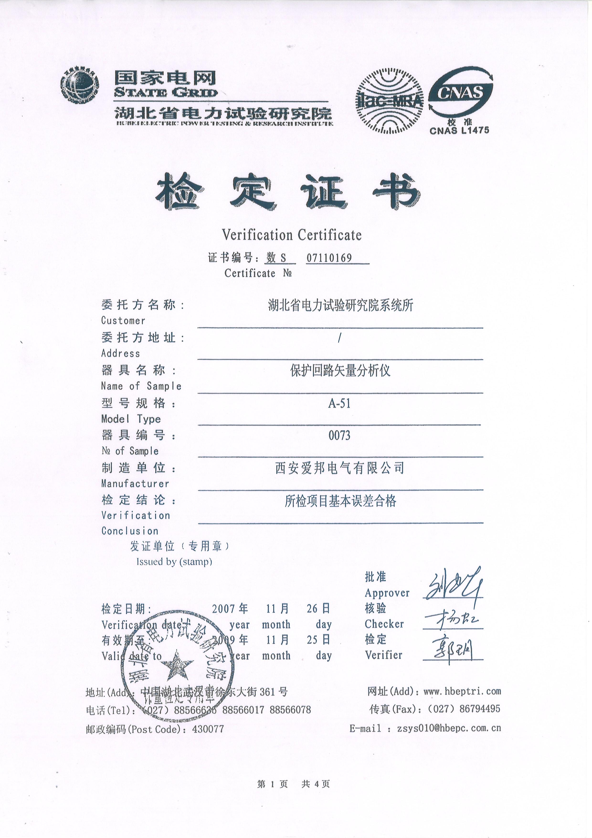 湖北電科院Apwr51檢定證書