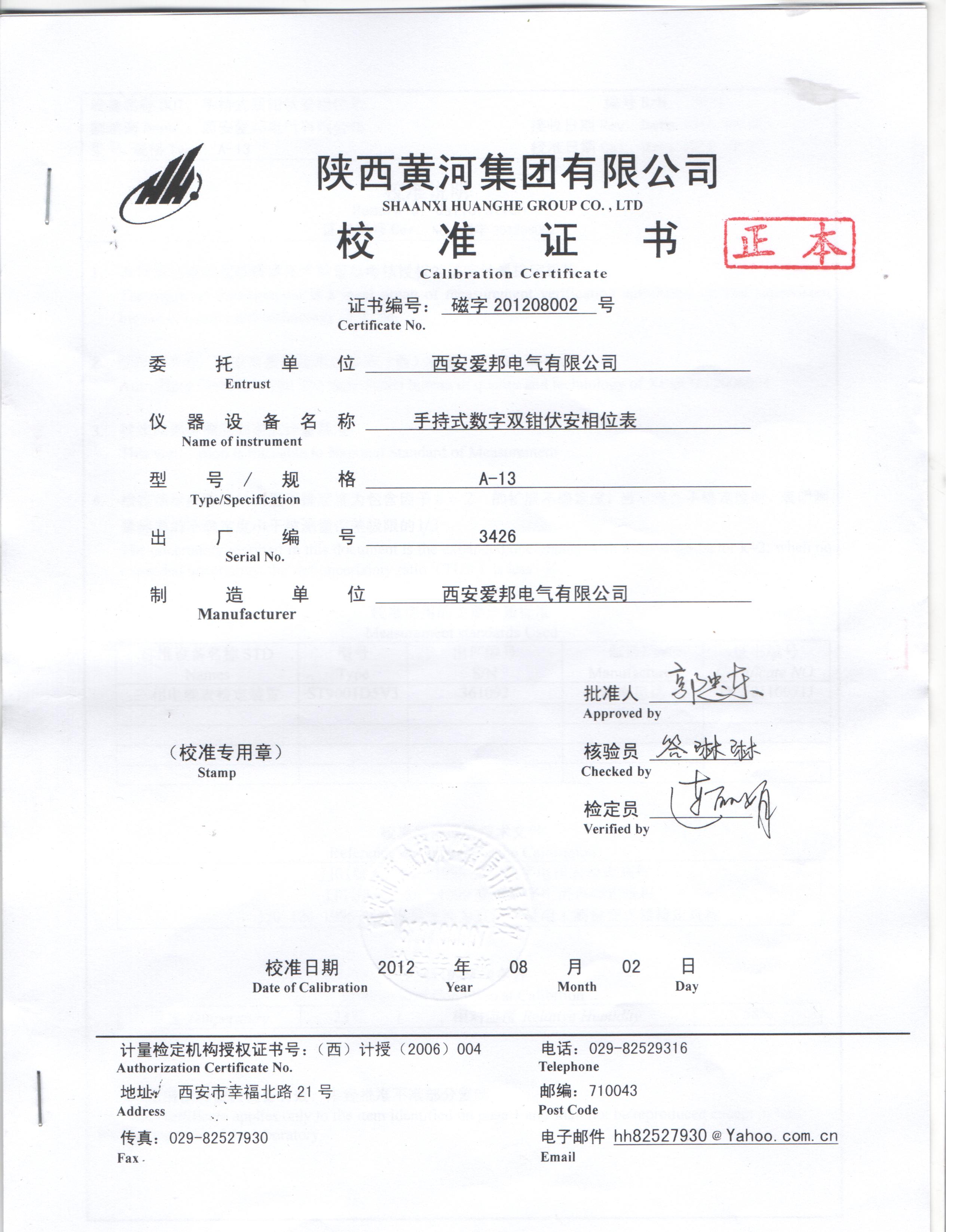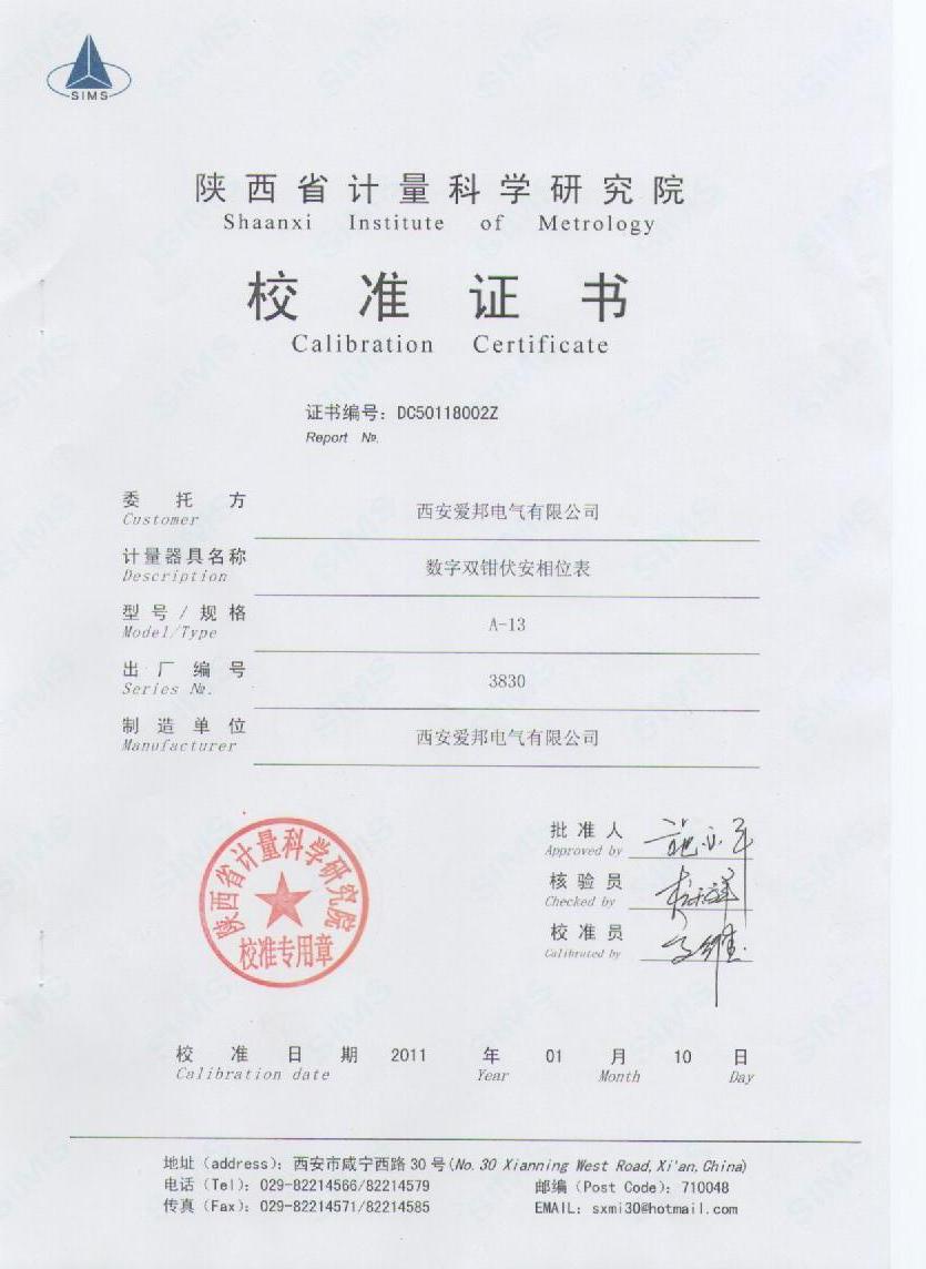 陜西計量院Apwr13檢定證書