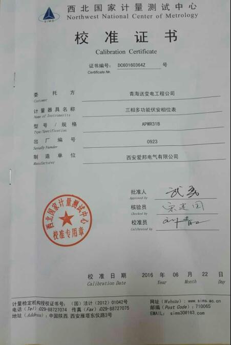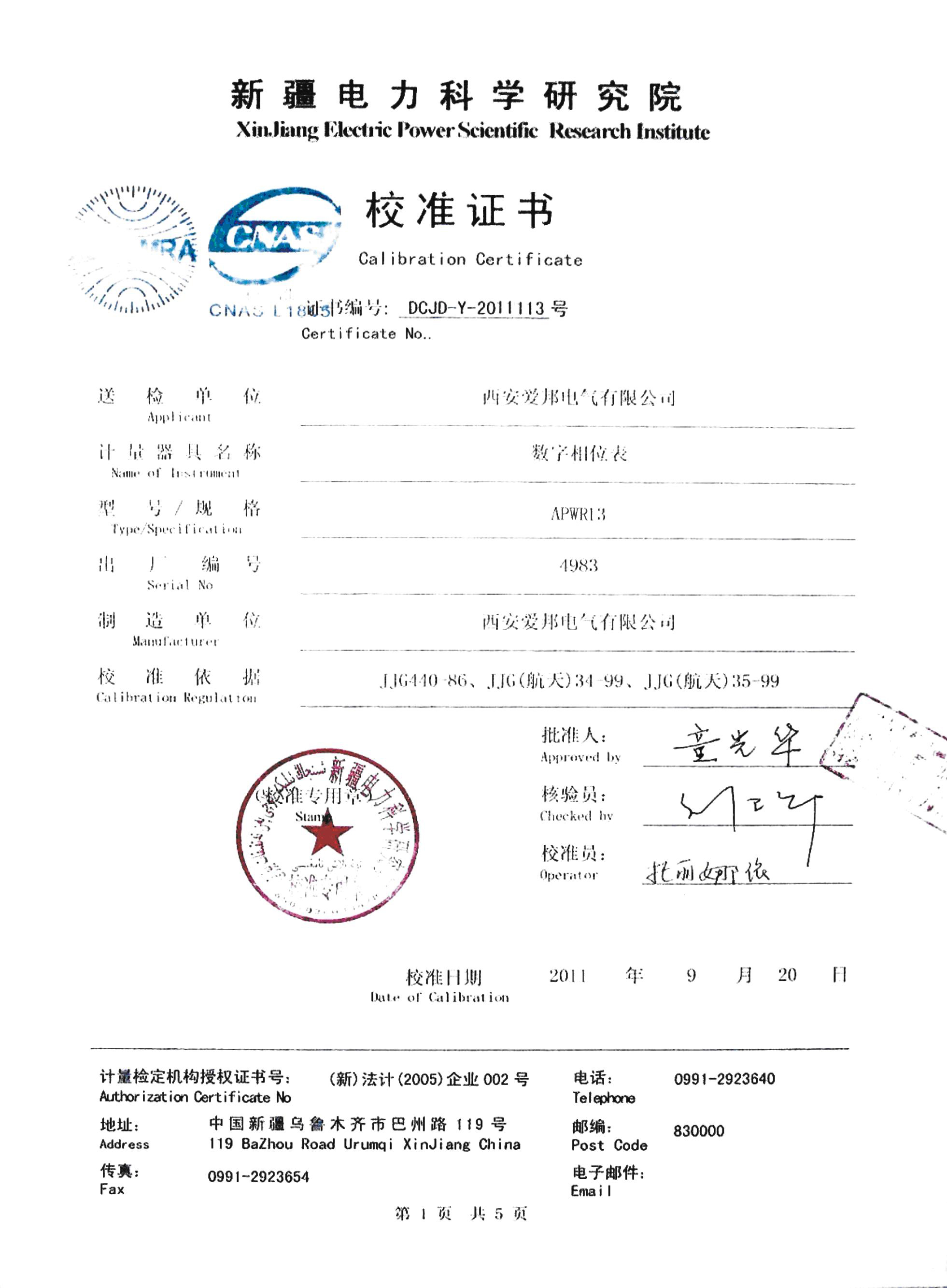 新疆電科院Apwr13檢定證書